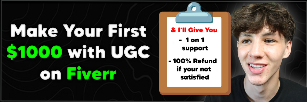 This guide will teach you exactly how to make your first $1,000 with UGC on Fiverr like I have done. I'll show you how to set everything up, the best platforms & tools to use, and give you free access to my community where you can talk to and learn from me, and other UGC creators on the same journey (community is a work in progress).